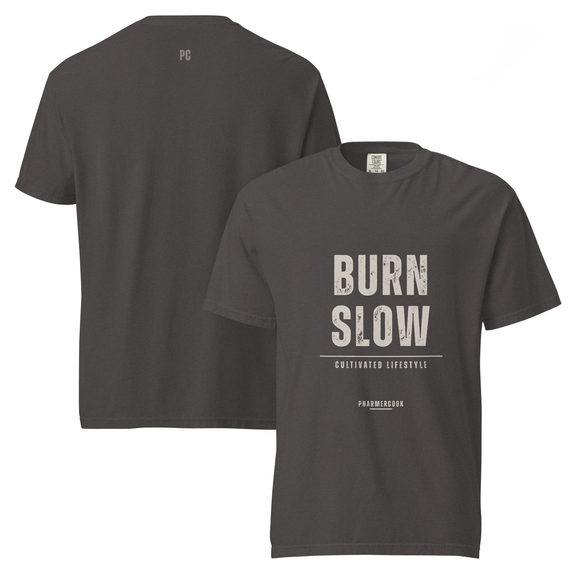 Burn Slow, front and center. This piece carries the message upfront—built for those who move with intention and don’t follow the rush. Clean, direct, and made to be worn anywhere.